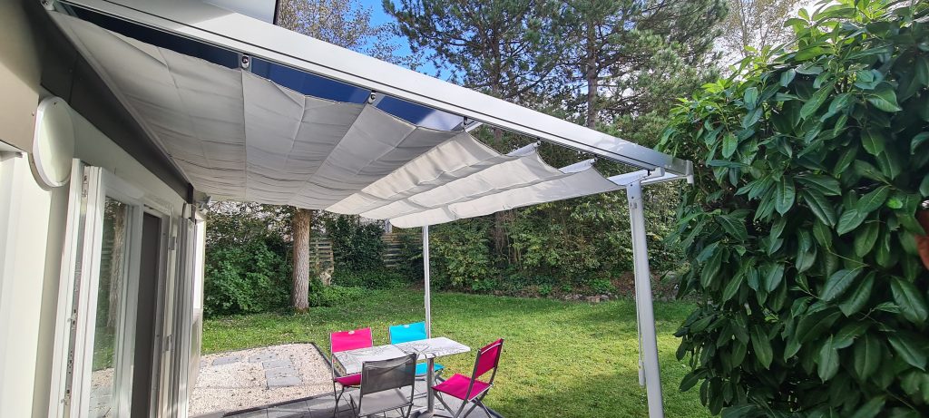 - Canicule ; une voile d’ombrage se déplie sur toute la terrasse.